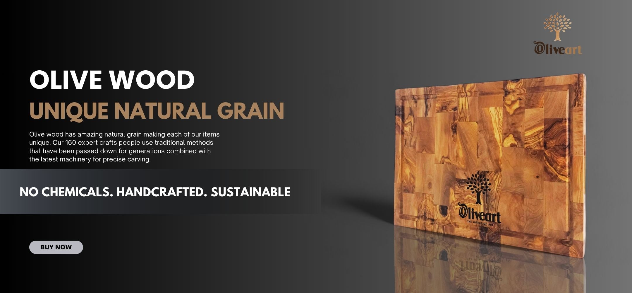 Olive wood has amazing natural grain making each of our items unique. Our 160 expert crafts people use traditional methods that have been passed down for generations combined with the latest machinery for precise carving.
