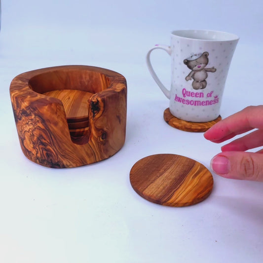 Olive Wood Coaster Set of 6 in Holder 12 cm