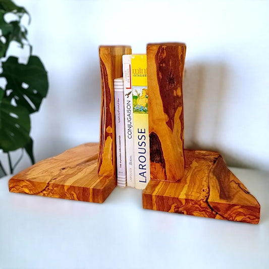 Olive Wood Rustic Wooden Bookends/Bookstand