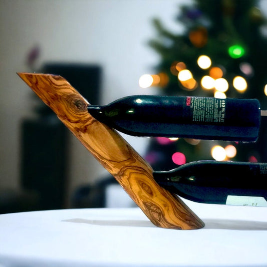 Olive Wood Handcrafted Free Standing Wooden Bottle Holder Centre Display For Wines, Olive Oil & More | Various Sizes