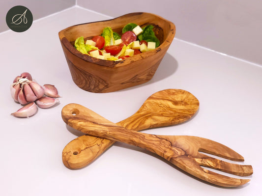 Wooden Salad Server, Olive Wood Cutlery 30 cm, spoon , fork, kitchen utensils, cookware, restaurant, chef, gift