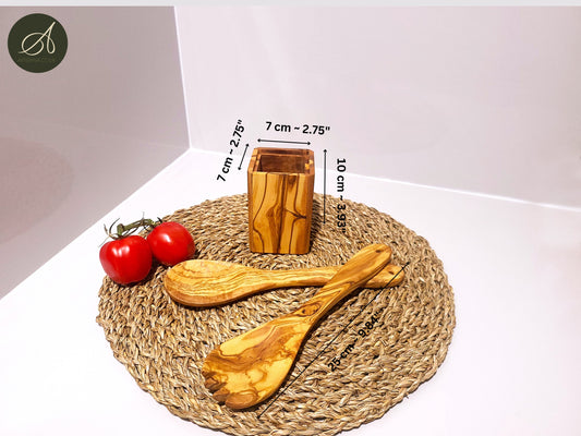 Wooden Utensils Set, Olive Wood Spoon Holder with 6 spoons 20 cm, kitchen utensils, cookware, handmade, decor, gift, restaurant
