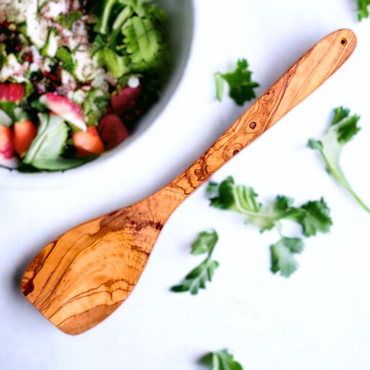 Olive Wood Small Square-Toed Cutlery 29 cm, salad server, spoon, fork, kitchen utensils, cookware, handmade, gift for chef, gift