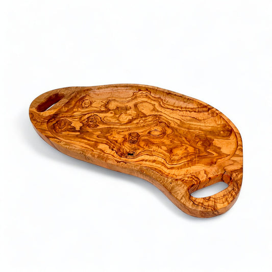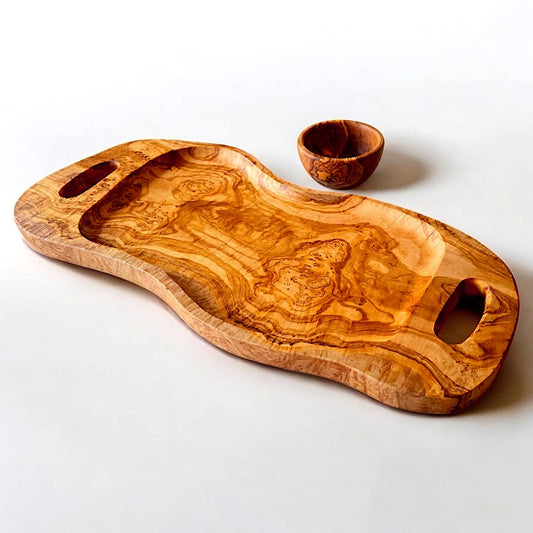 Olive Wood Irregular Shape Handcrafted Wooden Breakfast Serving Tray W/ Handles