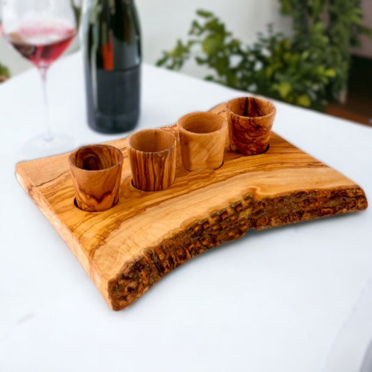 Luxury Hand-Finished Olive Wood Tequila & Appetizer Set