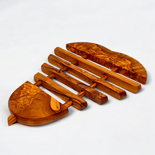 Wooden Coaster, Olive Wood Fish shaped Pan Coaster 26 cm, kitchen trivets, kitchen accessories, restaurant, chef, handmade, gift