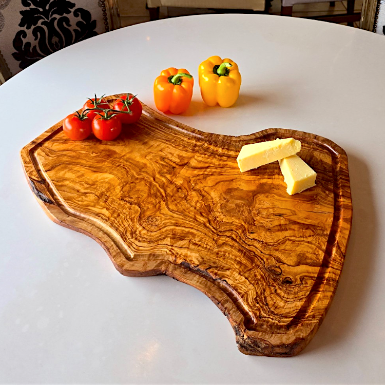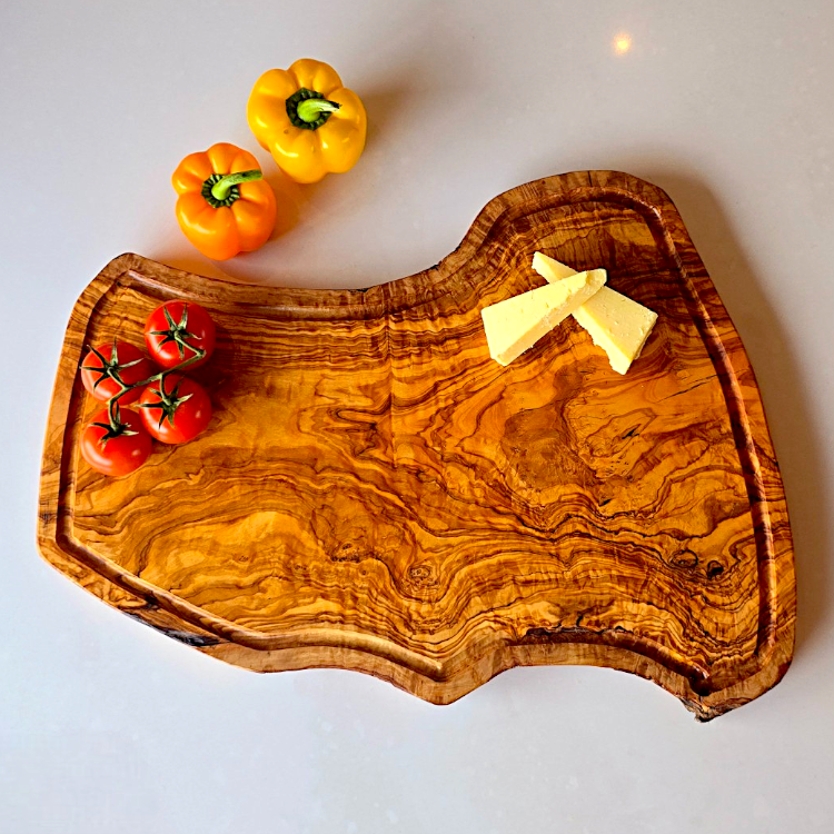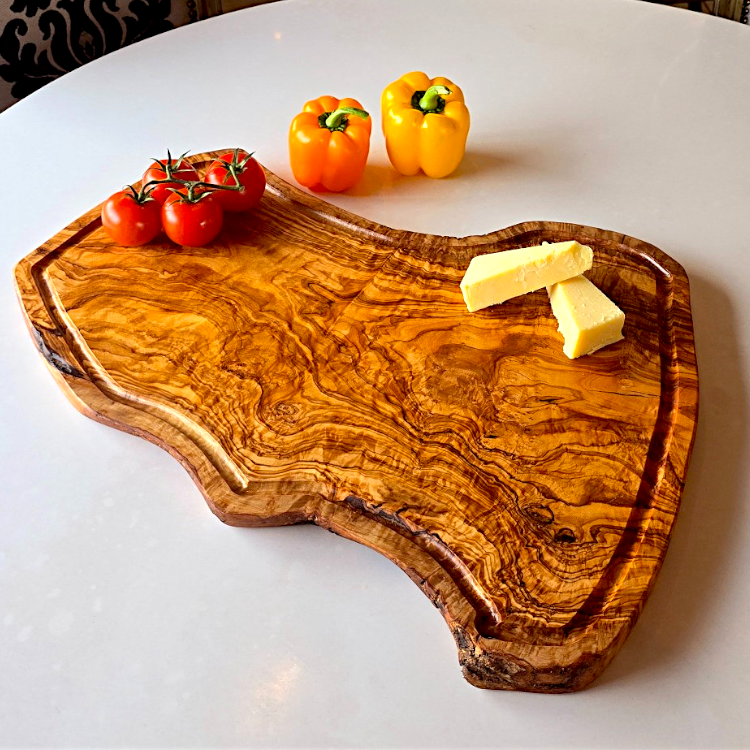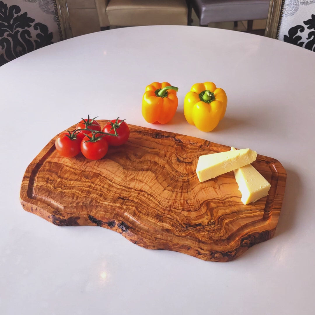 Large Olive Wood Chopping Board With Groove Irregular Shaped Cutting/Charcuterie/Cheese/Meat/Serving Board | Various Sizes